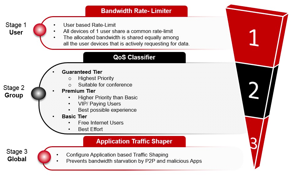After going through the first stage engine, user traffic is then classified according to the defined QoS Tier.