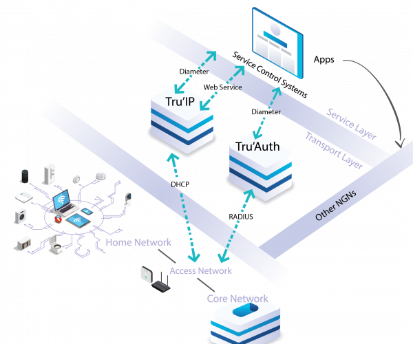 Tru’IP is designed for the growing demands of next generation networks (NGNs), so this product family can easily handle demands of complex networks that call for high capacity, high performance, and reliable connectivity with low latency. It also provides more flexibility in complex subscribers-to-IP service control logic (i.e. device type, circuit, concurrency), and is well positioned for CSPs to support existing and future business needs (i.e. wholesale, MVNE, VAS).